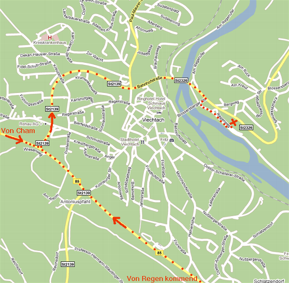 Über die Bundesstraße B85 aus Richtung Regen oder Cham kommend, biegen Sie bei Viechtach in die Staatsstraße St2139 ab.